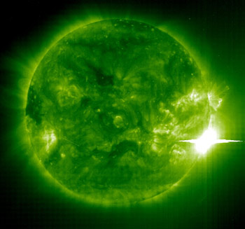 to desert skin. beating rhythms through the earth on wings and the last voice we hear is an angry giant’s whisper our final thoughts to nature’s green wit and bite flesh of a million years is peeled away. The sky’s of dazed laughter across the world before going smoulders at the heart of the earth. A fiery Copyright © 2008, David Jalajel Image Credit: SOHO (ESA & NASA) David Jalajel is originally from Baltimore, Maryland and a graduate of Morgan State University. His poetry has recenty appeared in Amaze: the Cinquain Journal, Forgotten Ground Regained and The Ghazal Page. |